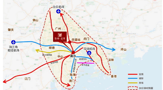 地铁出行优势显著,项目紧邻全国最快时速160km/h的地铁18号线分钟即可串联广州四大CBD(珠江新城、琶洲、万博、明珠湾),轻松实现快速通勤。地铁22号线实现“海陆空”枢纽间互联互通,广州南站-陈头岗首段已开通,未来将串联南沙客运站、广州火车站、广州白云站、广州南站等铁路枢纽与白云机场,规划东延至深圳、东莞等城市;地铁31号线作为南沙核心内环线米处设立灵山岛站,建成后将进一步提升项目的交通便捷度,让业主出行更加轻松。